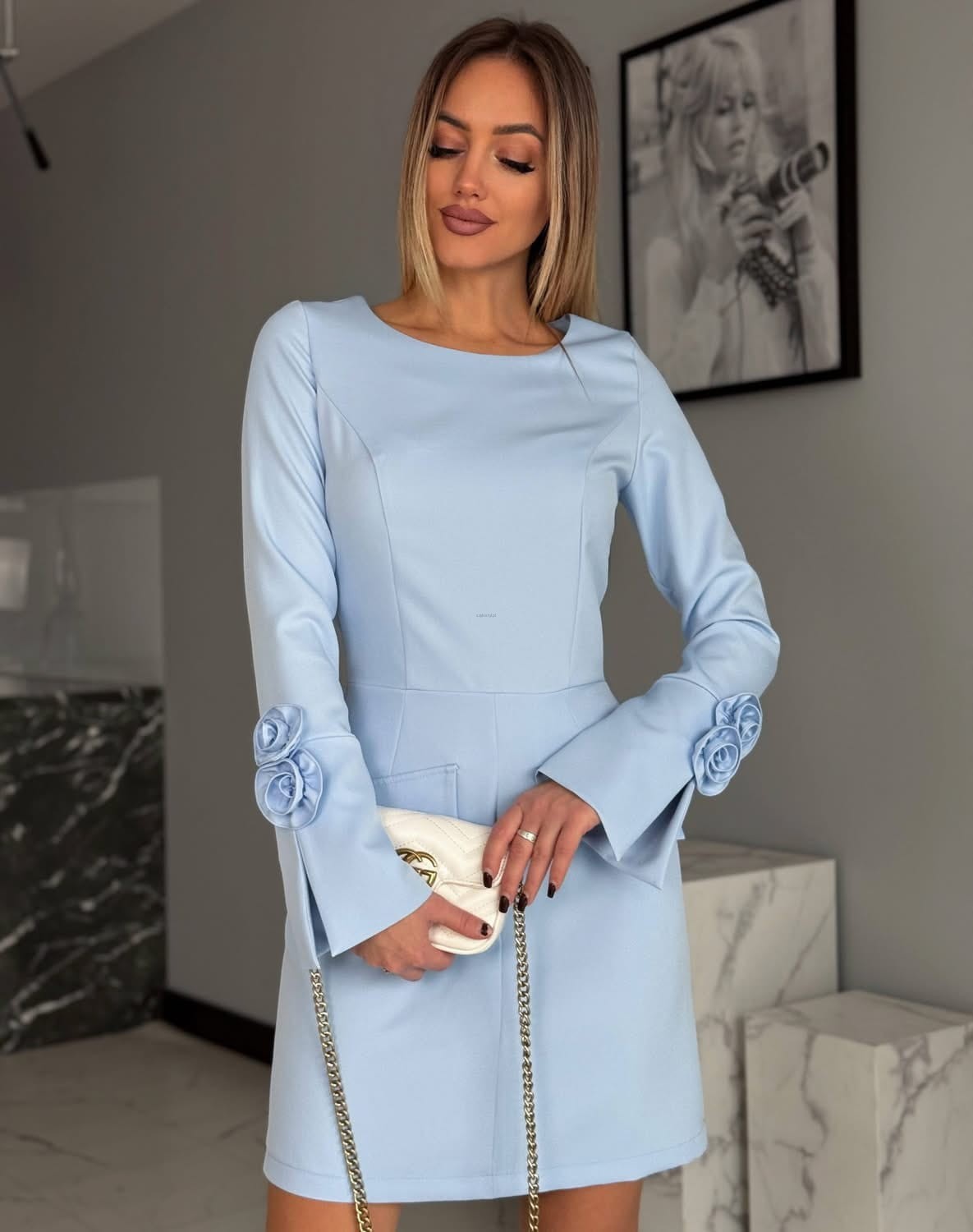 Sukienka mini z różą dopasowana Marina xs s m l XL błękit