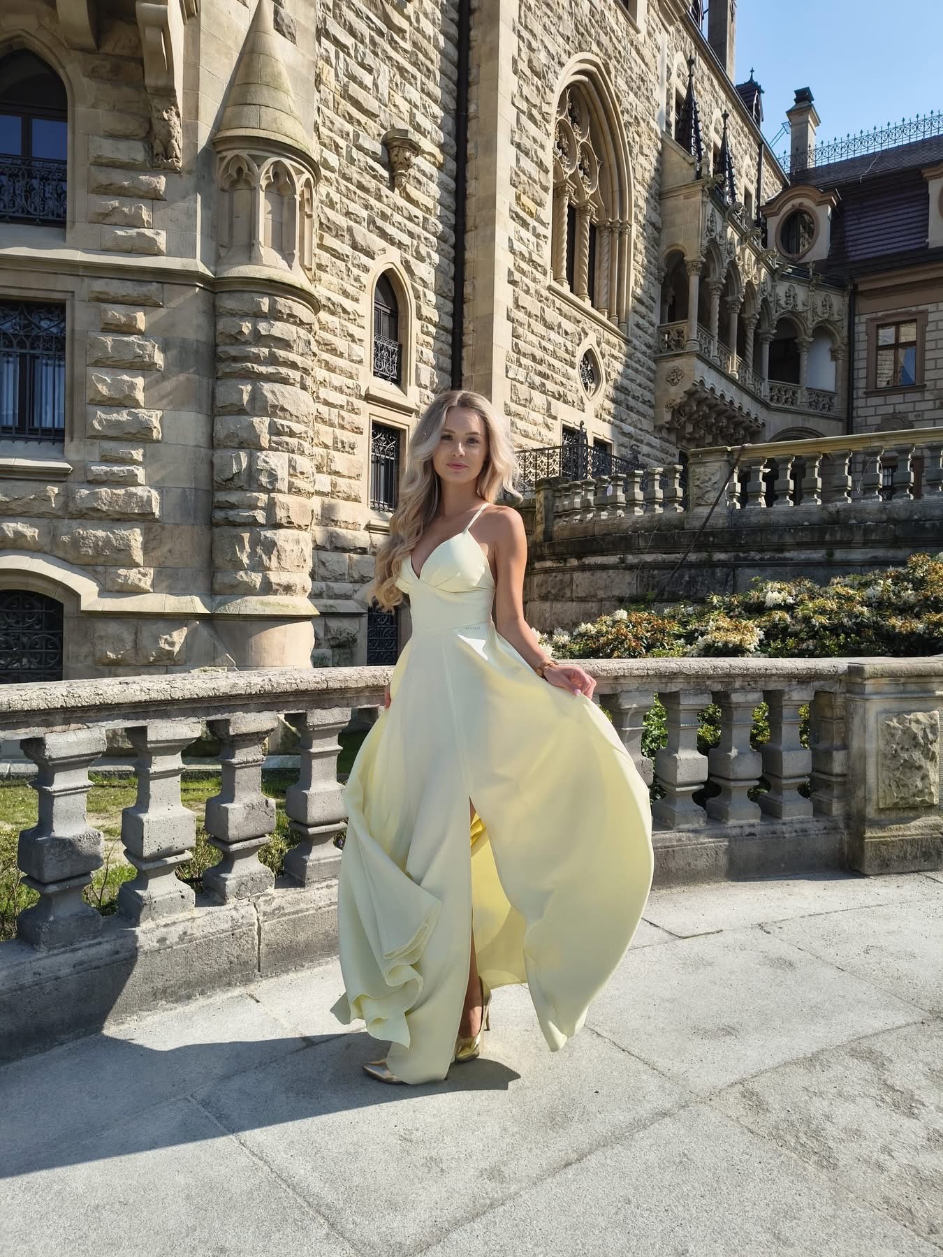 Wiązana sukienka ELIZ push up maxi rozcięcie na nogę 34.36.38.40 slub żółta cytryna
